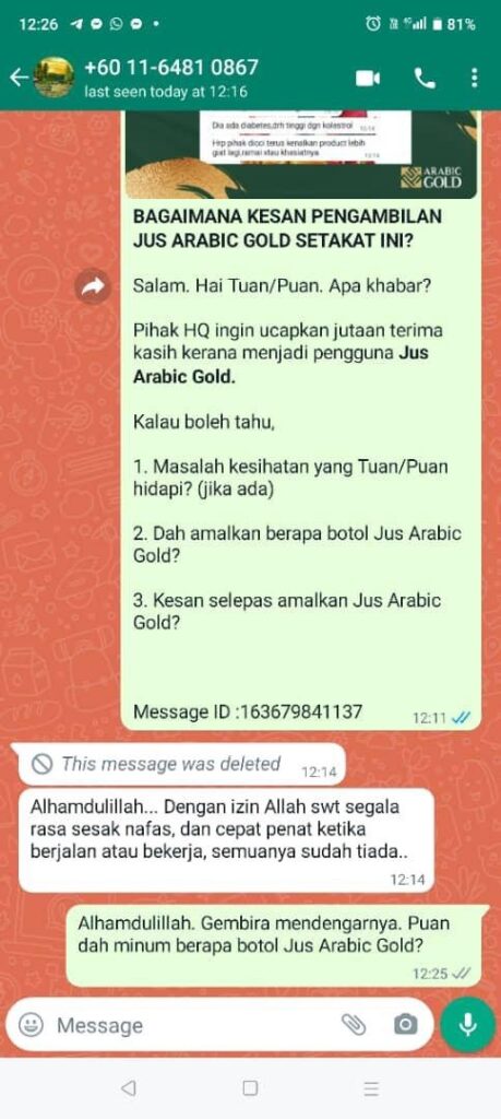 Jus Arabic Gold merupakan Jus berasaskan Arabic Gum Pertama Di Malaysia. Diformulakan Khusus Untuk Mengurangkan Masalah 4 serangkai Dikelaskan sebagai suppliment di bawah klasifikasi makanan tambahan tanpa bahan kimia & steroid dengan Nombor Rujukan:30112020/11/124 dan selamat untuk diminum.